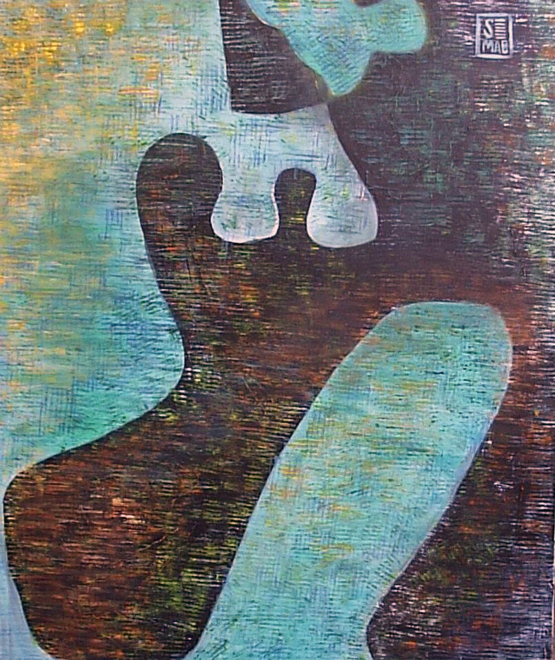 I love Mathematics especially the Venn Diagram where circles overlap. I overlap geometric shapes strategically to recreate the human form and color or paint in between.
